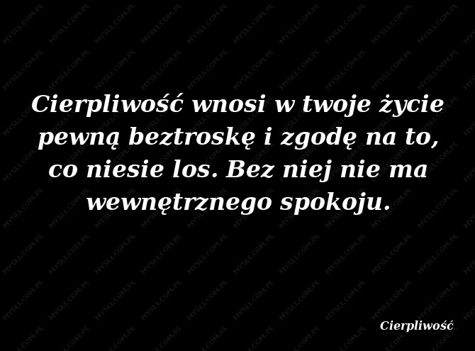 Cierpliwość wnosi w twoje życie pewną beztroskę i zgodę na to, co niesie los. Bez niej nie ma wewnętrznego spokoju.