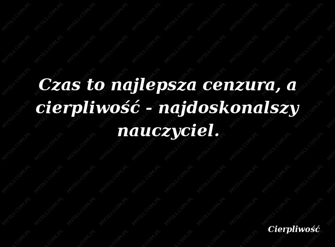 Czas to najlepsza cenzura, a cierpliwość - najdoskonalszy nauczyciel.