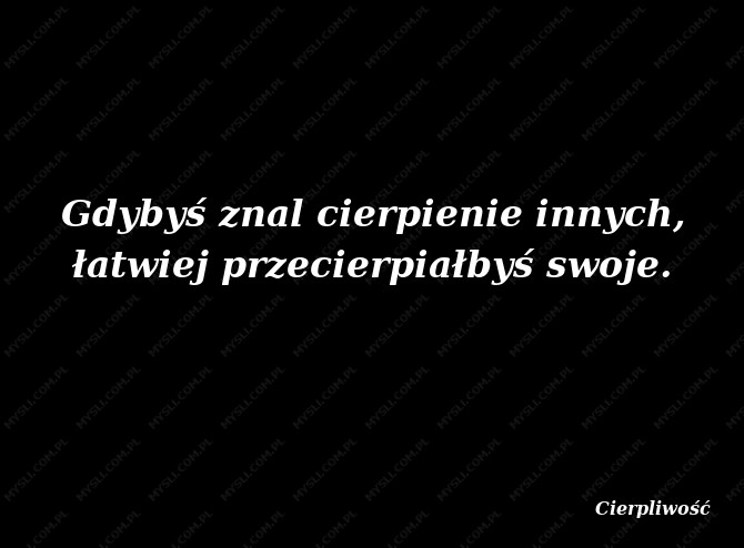Gdybyś znal cierpienie innych, łatwiej przecierpiałbyś swoje.