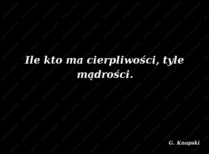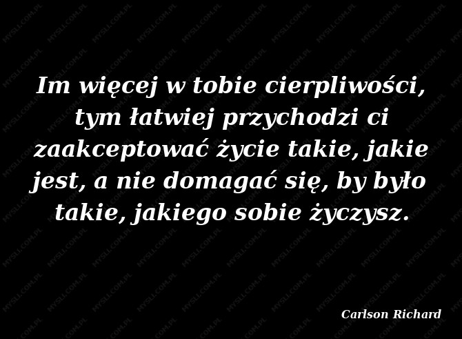 Im więcej w tobie cierpliwości, tym łatwiej przychodzi ci zaakceptować życie takie, jakie jest, a nie domagać się, by było takie, jakiego sobie życzysz.