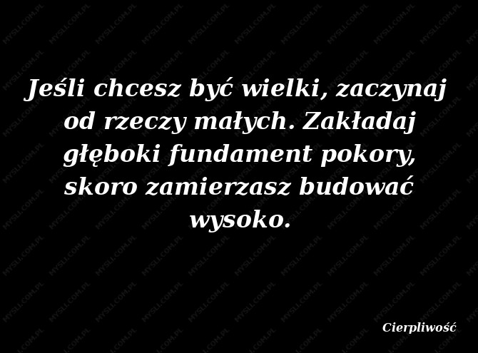 Jeśli chcesz być wielki, zaczynaj od rzeczy małych. Zakładaj głęboki fundament pokory, skoro zamierzasz budować wysoko.