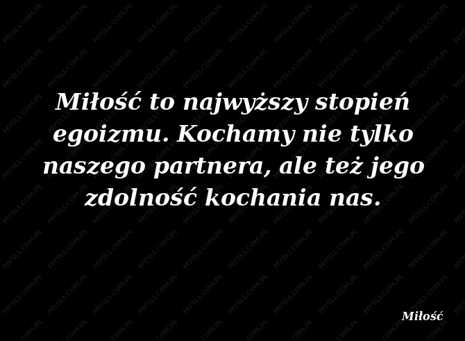 Miłość to najwyższy stopień egoizmu. Kochamy nie tylko naszego partnera, ale też jego zdolność kochania nas.