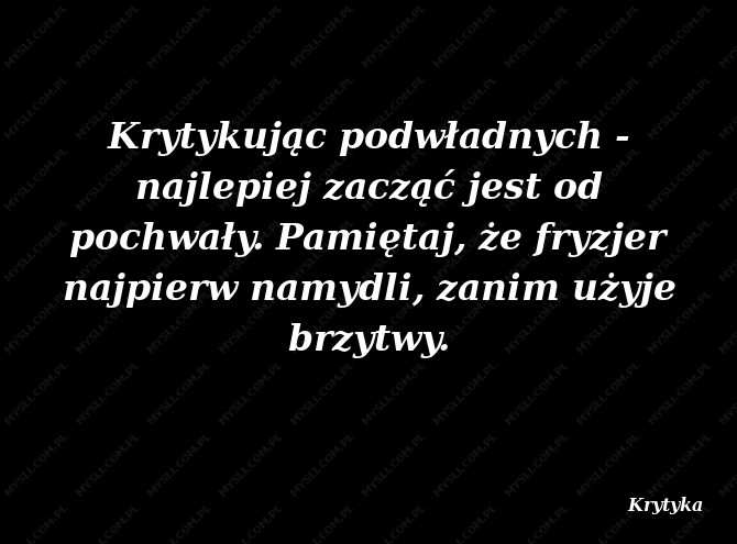 Krytykując podwładnych - najlepiej zacząć jest od pochwały. Pamiętaj, że fryzjer najpierw namydli, zanim użyje brzytwy.