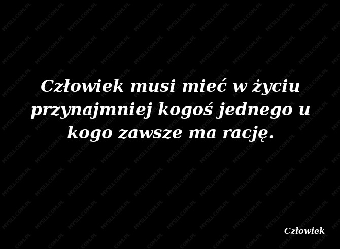 Człowiek musi mieć w życiu przynajmniej kogoś jednego u kogo zawsze ma rację.