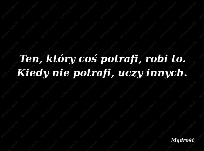 Ten, który coś potrafi, robi to. Kiedy nie potrafi, uczy innych.