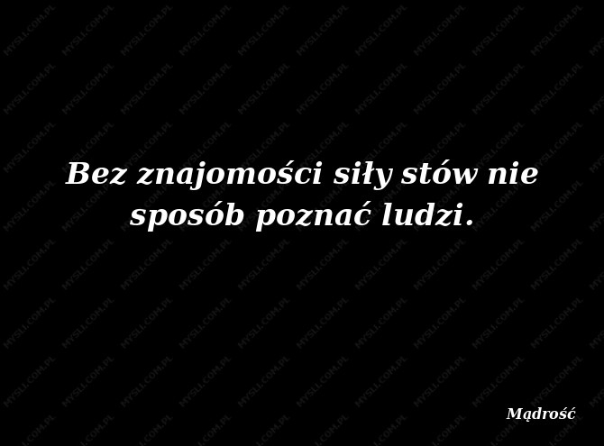 Bez znajomości siły stów nie sposób poznać ludzi.