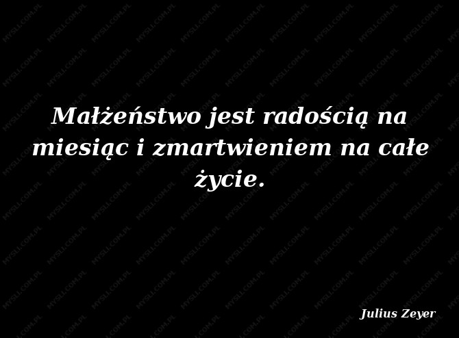 Małżeństwo jest radością na miesiąc i zmartwieniem na całe życie.