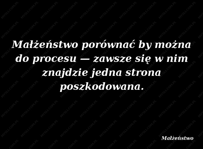 Małżeństwo porównać by można do procesu — zawsze się w nim znajdzie jedna strona poszkodowana.