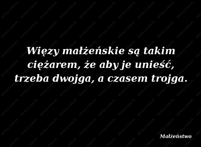 Więzy małżeńskie są takim ciężarem, że aby je unieść, trzeba dwojga, a czasem trojga.