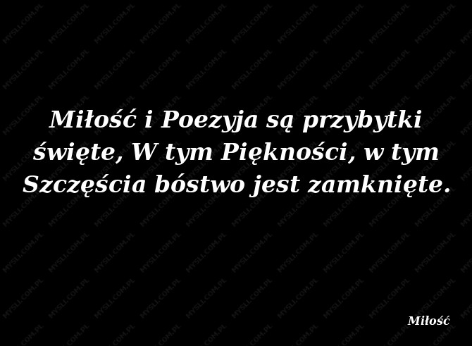 Miłość i Poezyja są przybytki święte, W tym Piękności, w tym Szczęścia bóstwo jest zamknięte.