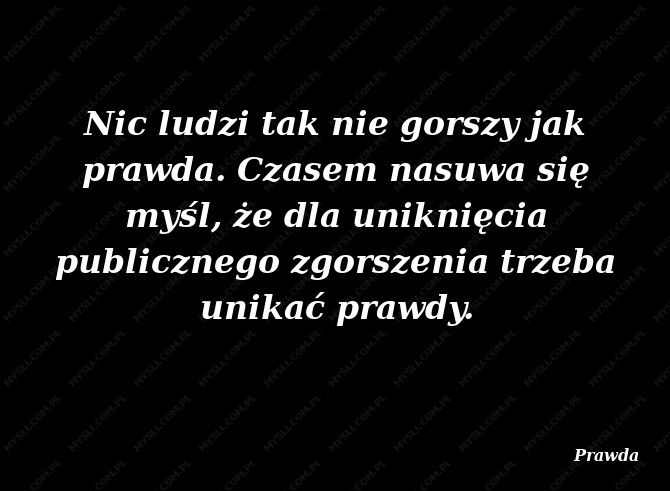 Nic ludzi tak nie gorszy jak prawda. Czasem nasuwa się myśl, że dla uniknięcia publicznego zgorszenia trzeba unikać prawdy.