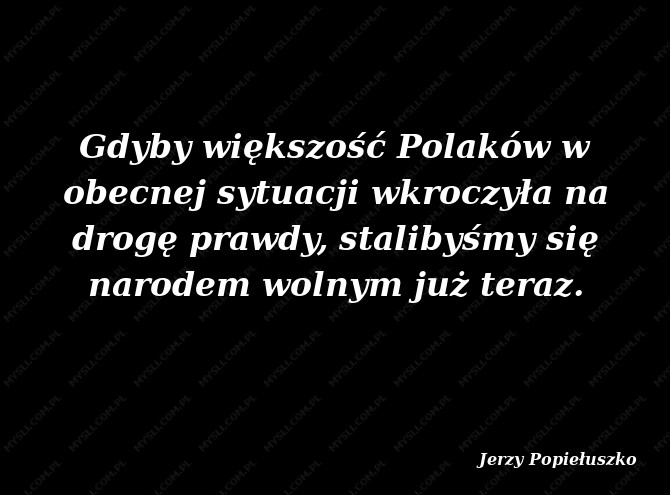 Gdyby większość Polaków w obecnej sytuacji wkroczyła na drogę prawdy, stalibyśmy się narodem wolnym już teraz.
