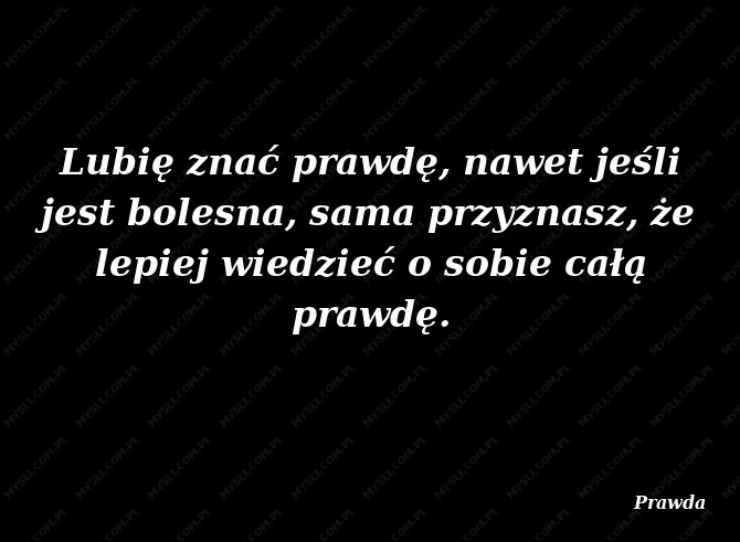 Lubię znać prawdę, nawet jeśli jest bolesna, sama przyznasz, że lepiej wiedzieć o sobie całą prawdę.