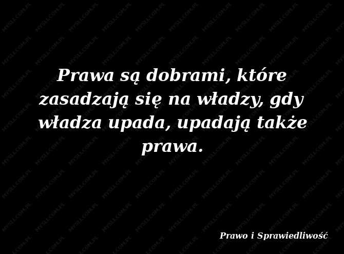 Prawa są dobrami, które zasadzają się na władzy, gdy władza upada, upadają także prawa.