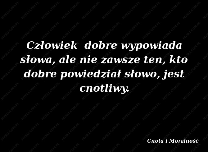 Człowiek dobre wypowiada słowa, ale nie zawsze ten, kto dobre powiedział słowo, jest cnotliwy.