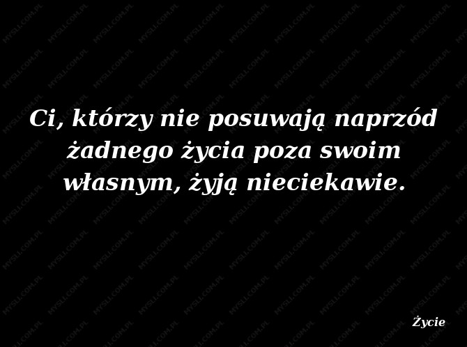 Ci, którzy nie posuwają naprzód żadnego życia poza swoim własnym, żyją nieciekawie.