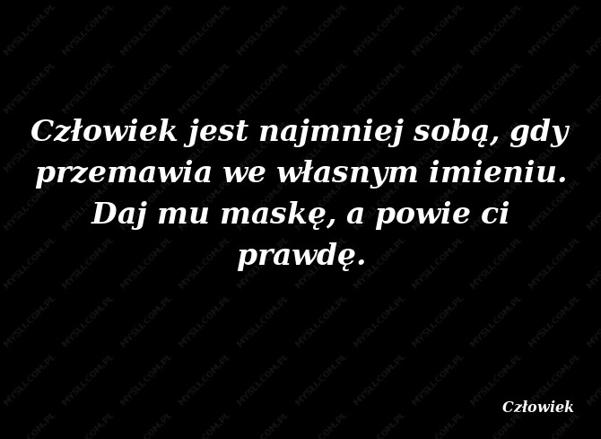 Człowiek jest najmniej sobą, gdy przemawia we własnym imieniu. Daj mu maskę, a powie ci prawdę.