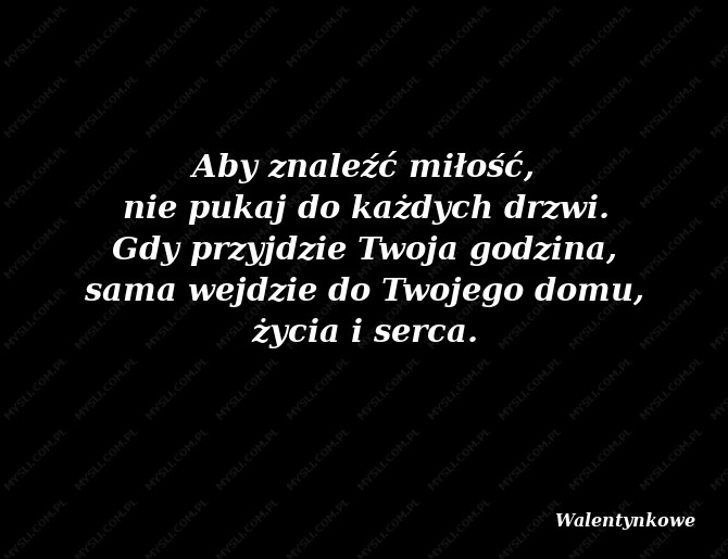 Aby znaleźć miłość, nie pukaj do każdych drzwi. Gdy przyjdzie Twoja godzina, sama wejdzie do Twojego domu, życia i serca.