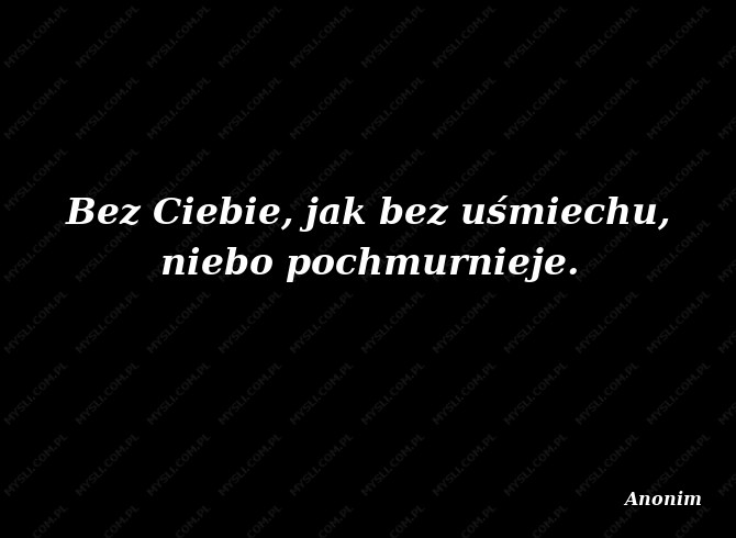 Bez Ciebie, jak bez uśmiechu, niebo pochmurnieje.
