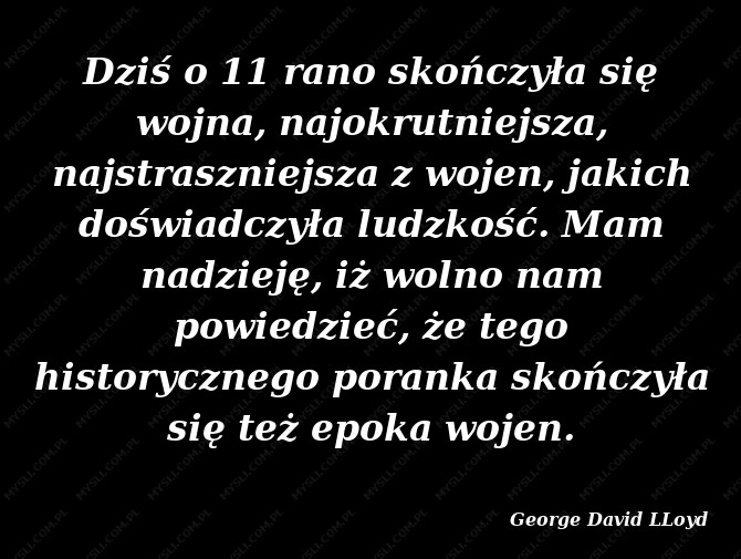 Dziś o 11 rano skończyła się wojna, najokrutniejsza, najstraszniejsza z wojen, jakich doświadczyła ludzkość. Mam nadzieję, iż wolno nam powiedzieć, że tego historycznego poranka skończyła się też epoka wojen.