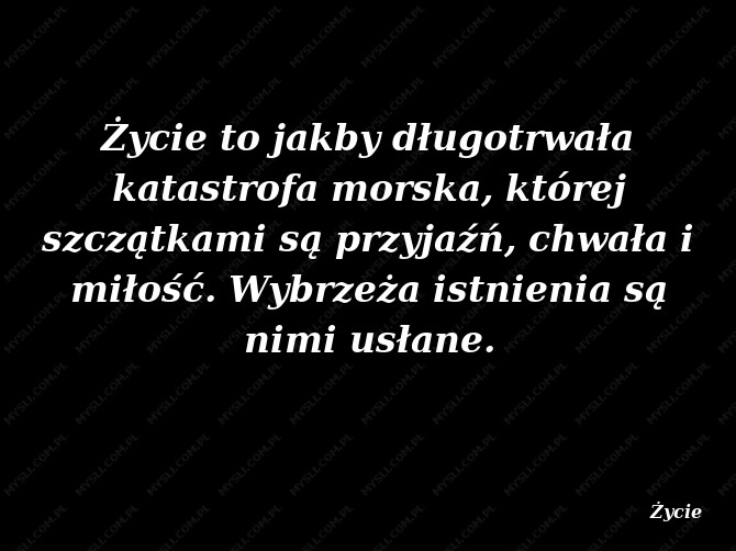 Życie to jakby długotrwała katastrofa morska, której szczątkami są przyjaźń, chwała i miłość. Wybrzeża istnienia są nimi usłane.