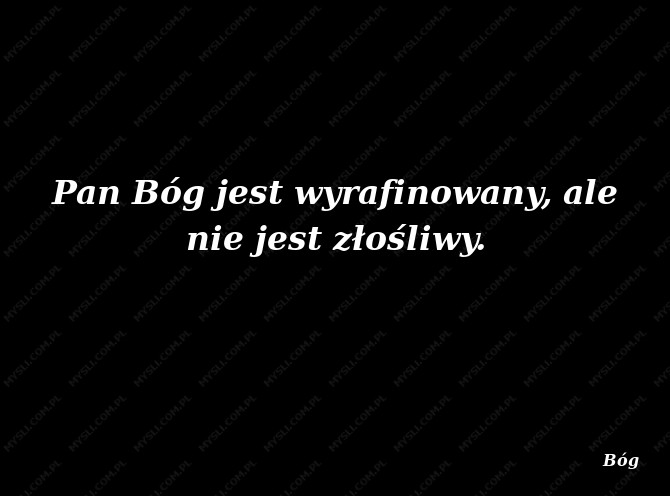 Pan Bóg jest wyrafinowany, ale nie jest złośliwy.