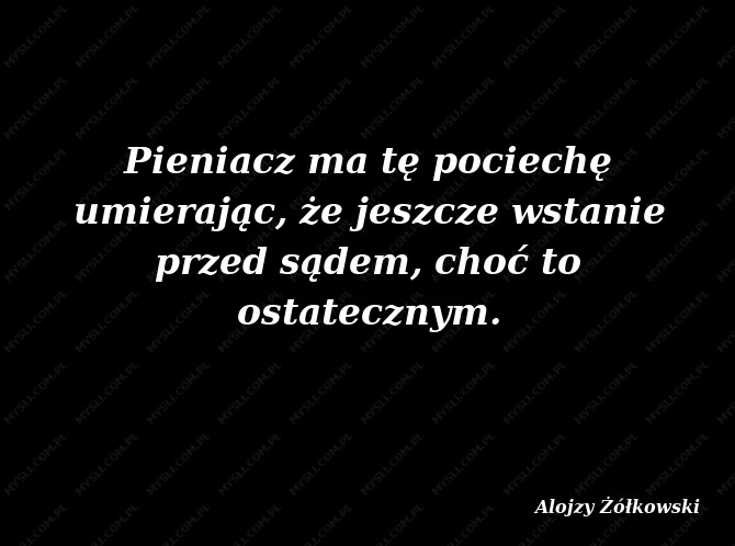 Pieniacz ma tę pociechę umierając, że jeszcze wstanie przed sądem, choć to ostatecznym.