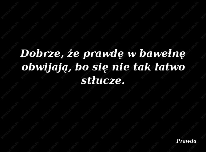 Dobrze, że prawdę w bawełnę obwijają, bo się nie tak łatwo stłucze.
