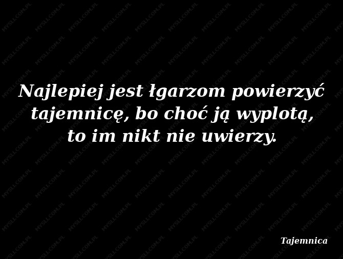 Najlepiej jest łgarzom powierzyć tajemnicę, bo choć ją wyplotą, to im nikt nie uwierzy.