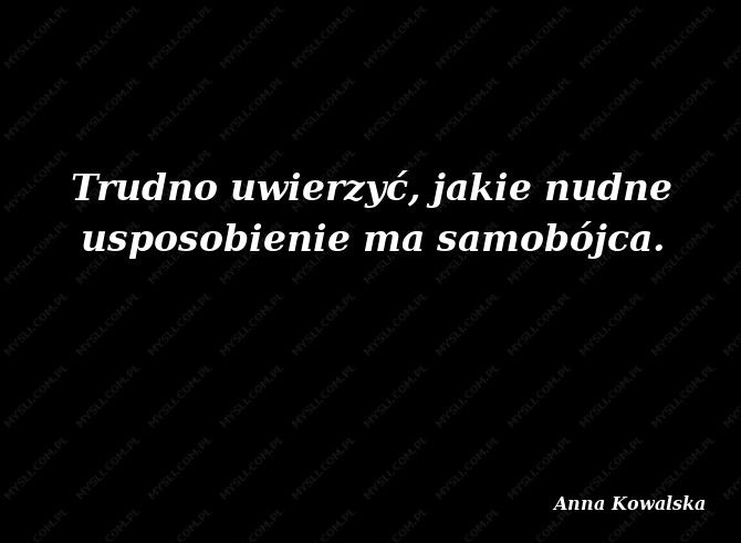Trudno uwierzyć, jakie nudne usposobienie ma samobójca.