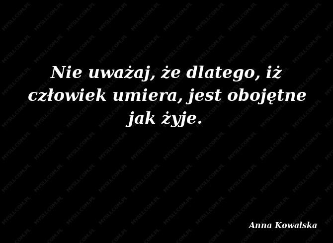 Nie uważaj, że dlatego, iż człowiek umiera, jest obojętne jak żyje.