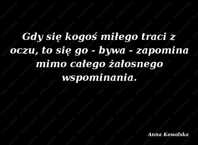 Gdy się kogoś miłego traci z oczu, to się go - bywa - zapomina mimo całego żałosnego wspominania.