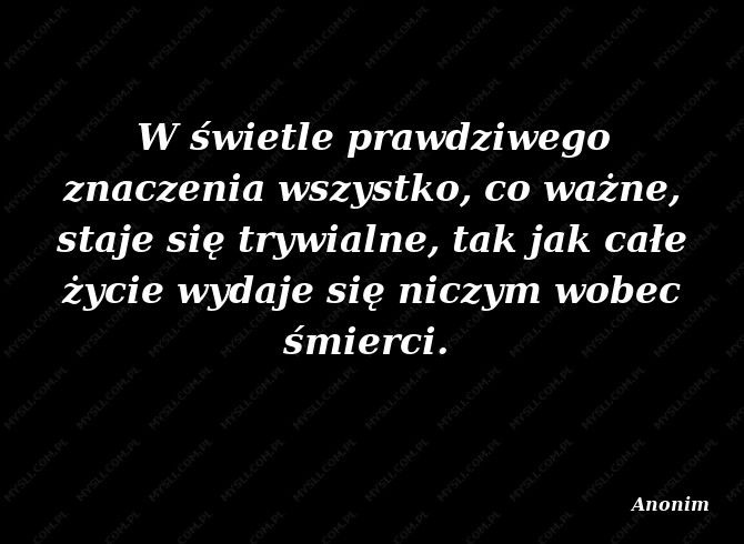 W świetle prawdziwego znaczenia wszystko, co ważne, staje się trywialne, tak jak całe życie wydaje się niczym wobec śmierci.