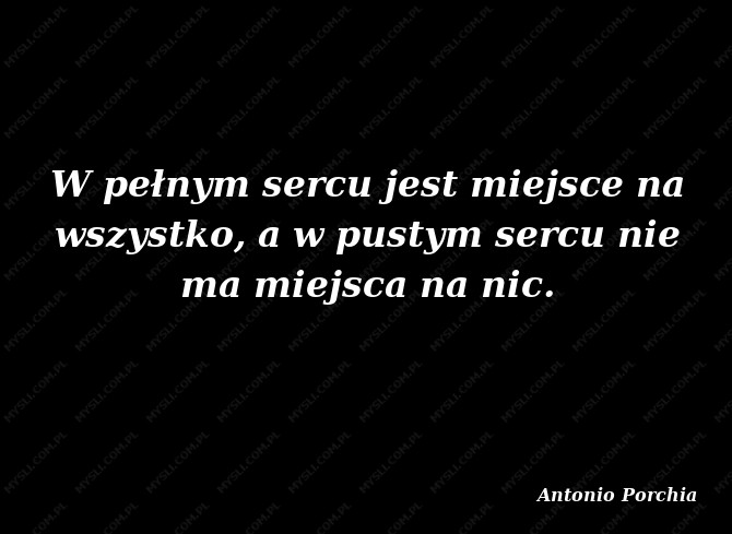 W sercu pełnym jest miejsce dla każdego, w pustym nie ma miejsca dla nikogo.
