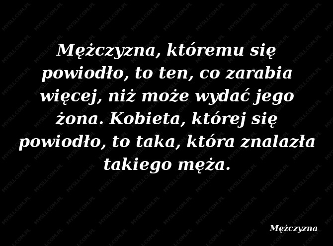 Mężczyzna, któremu się wiedzie, to taki, który zarabia więcej, niż jego żona jest w stanie wydać.