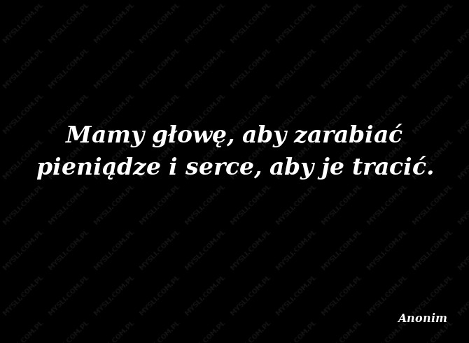 Mamy głowę, aby zarabiać pieniądze i serce, aby je tracić.