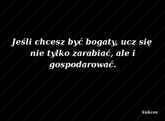 Jeśli chcesz być bogaty, ucz się nie tylko zarabiać, ale i gospodarować.