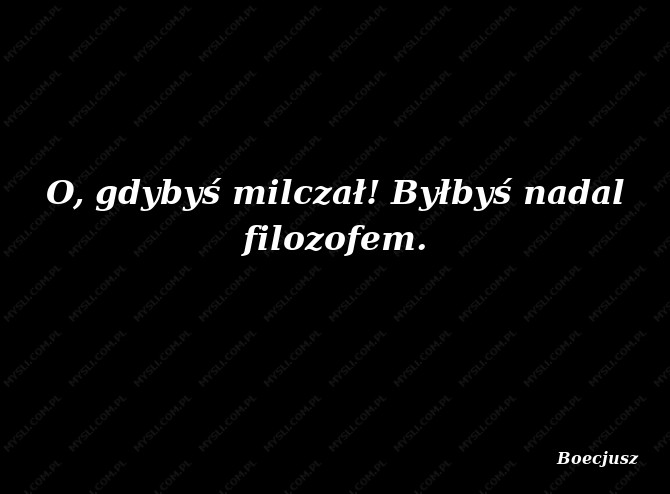 O, gdybyś milczał! Byłbyś nadal filozofem.