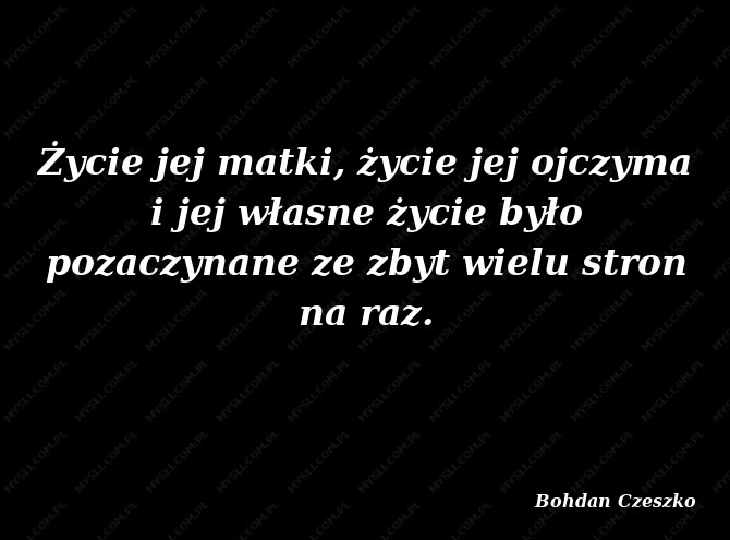 Życie jej matki, życie jej ojczyma i jej własne życie było pozaczynane ze zbyt wielu stron na raz.