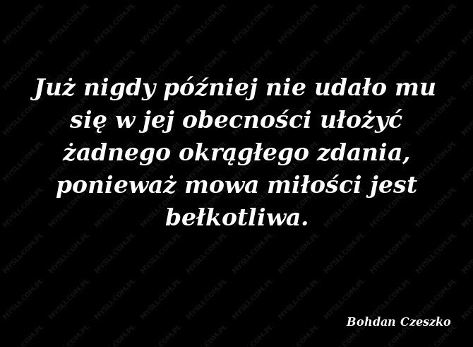 Już nigdy później nie udało mu się w jej obecności ułożyć żadnego okrągłego zdania, ponieważ mowa miłości jest bełkotliwa.