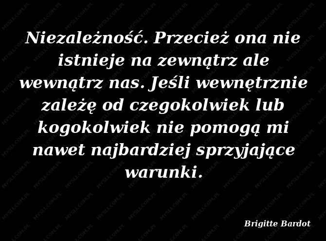 Niezależność. Przecież ona nie istnieje na zewnątrz ale wewnątrz nas. Jeśli wewnętrznie zależę od czegokolwiek lub kogokolwiek nie pomogą mi nawet najbardziej sprzyjające warunki.