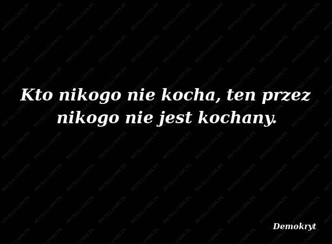 Kto nikogo nie kocha, ten przez nikogo nie jest kochany.