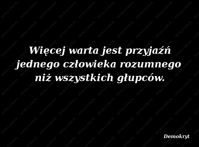 Więcej warta jest przyjaźń jednego człowieka rozumnego niż wszystkich głupców.