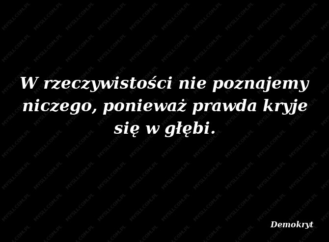 W rzeczywistości nie poznajemy niczego, ponieważ prawda kryje się w głębi.