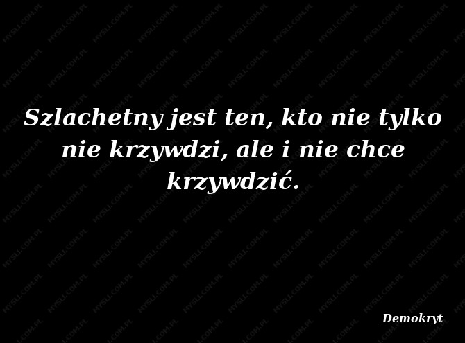 Szlachetny jest ten, kto nie tylko nie krzywdzi, ale i nie chce krzywdzić.