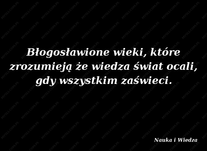 Błogosławione wieki, które zrozumieją że wiedza świat ocali, gdy wszystkim zaświeci.