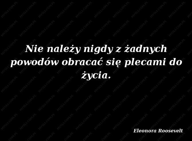 Nie należy nigdy z żadnych powodów obracać się plecami do życia.