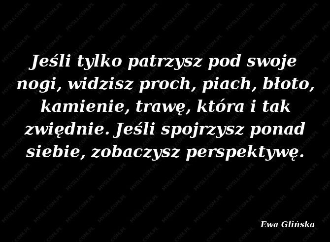 Jeśli tylko patrzysz pod swoje nogi, widzisz proch, piach, błoto, kamienie, trawę, która i tak zwiędnie. Jeśli spojrzysz ponad siebie, zobaczysz perspektywę.