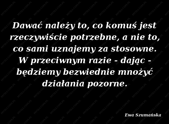 Dawać należy to, co komuś jest rzeczywiście potrzebne, a nie to, co sami uznajemy za stosowne. W przeciwnym razie - dając - będziemy bezwiednie mnożyć działania pozorne.