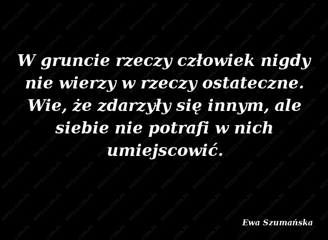 W gruncie rzeczy człowiek nigdy nie wierzy w rzeczy ostateczne. Wie, że zdarzyły się innym, ale siebie nie potrafi w nich umiejscowić.